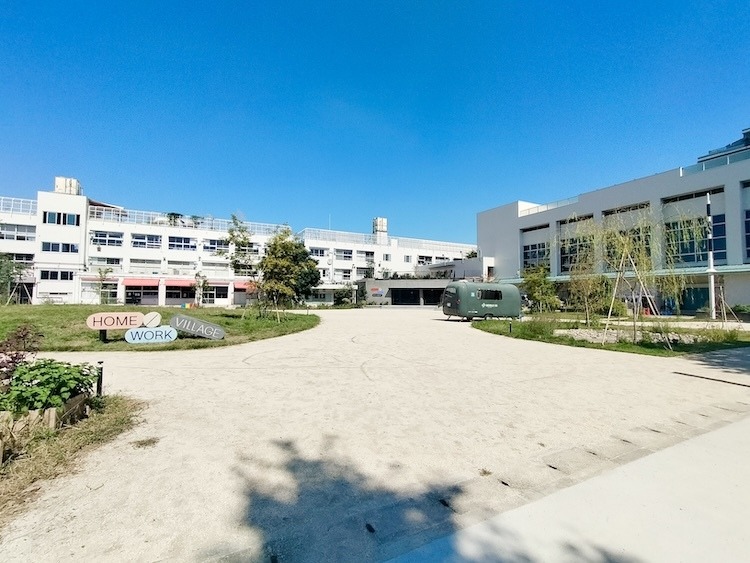 「HOME/WORK VILLAGE」は、2004年に廃校となった旧池尻中学校を丸ごとリノベーションし、2025年7月にオープンしたばかりの複合施設です。働く・遊ぶ・学ぶ・食べるがひとつになり、世田谷区内の産業イノベーションを創出しているのだそう。