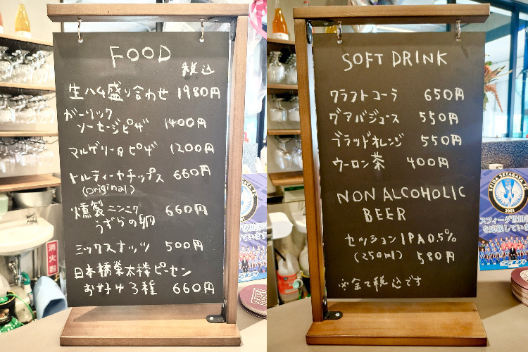 フードとソフトドリンクのメニューはこちら。ピザは店内のオーブンで焼いてくれるそうです!仲間とシェアするのもおすすめ。