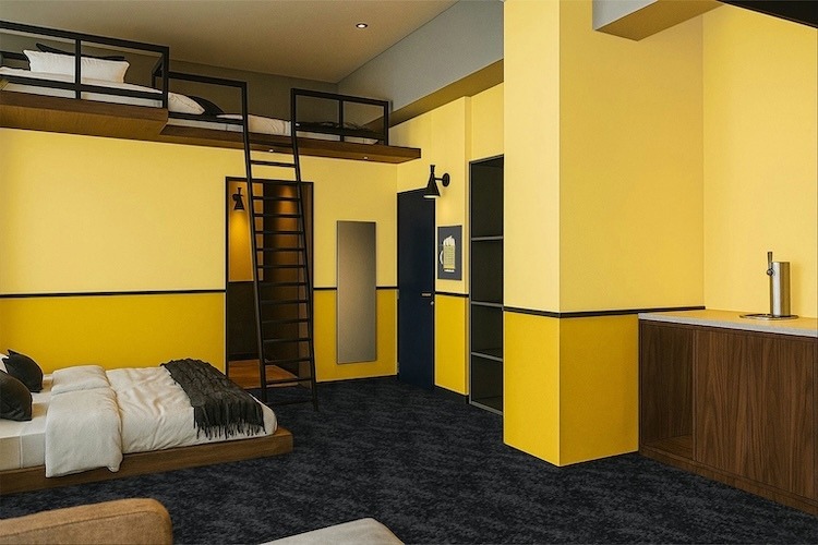 3つの客室はそれぞれ定番ビールの世界観をテーマにデザイン。グループ&ファミリールームは4~5人がビール片手に楽しめるようロフトベッド構造となっています。