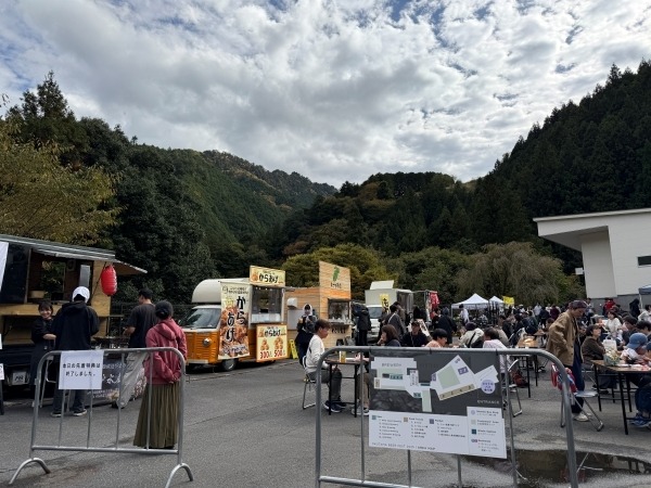 会場に着くと、キッチンカーから地元グルメの美味しそうな匂いが漂い、奥多摩の澄んだ空気と混じり合って食欲を誘います。広々とした醸造所の敷地内にはイスとテーブルが並び、ビール片手に談笑する人々の姿。解放された醸造所内ではタンクを眺めながら、思い思いにグラスを傾ける──そんな穏やかな時間が流れていました。