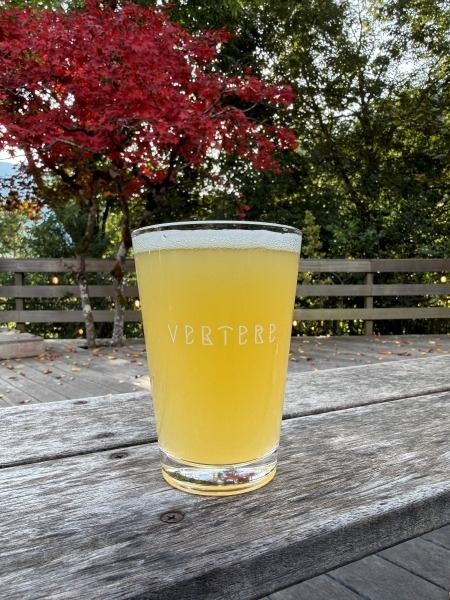 フェスを後にして駅前へ戻ると、VERTEREのボトルショップが目に入ります。さらにショップ脇の小道を行くとVERTEREのタップルーム「Beer Cafe VERTERE」があります。「青山居麦酒醸造所」という看板を掲げた趣のある門をくぐると木々の中にウッドデッキが広がり、古民家をリノベーションした店舗が佇みます。