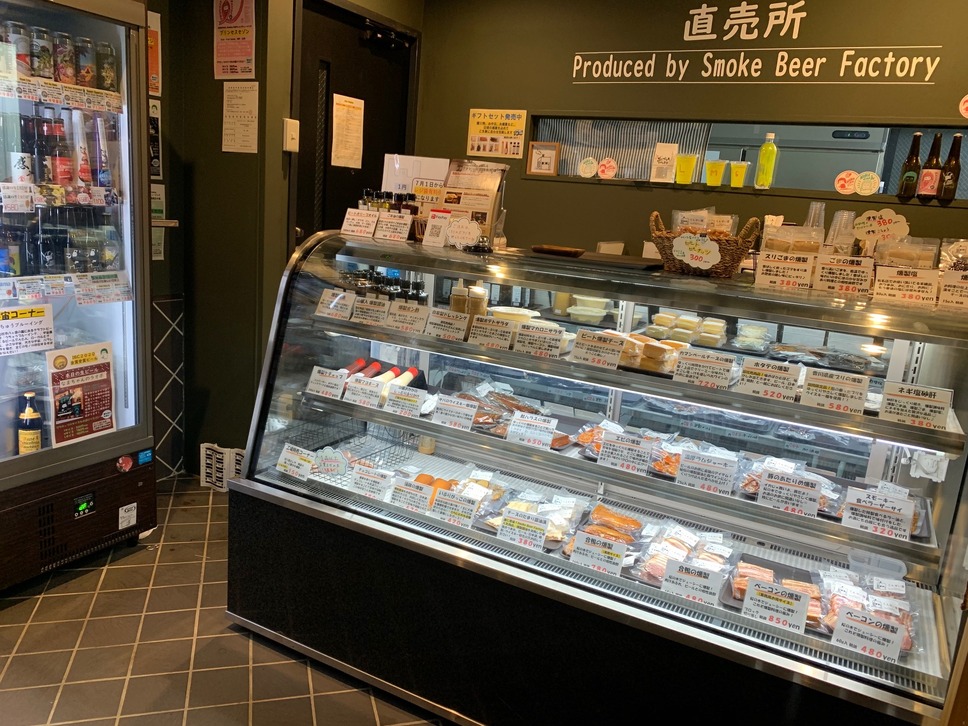 山崎さん:くんせい屋は、燻製工場を併設した直売所で、約50種類の燻製と約100種類のボトルビールをテイクアウト販売しています。美味しい食べ合わせをスタッフが提案いたします。