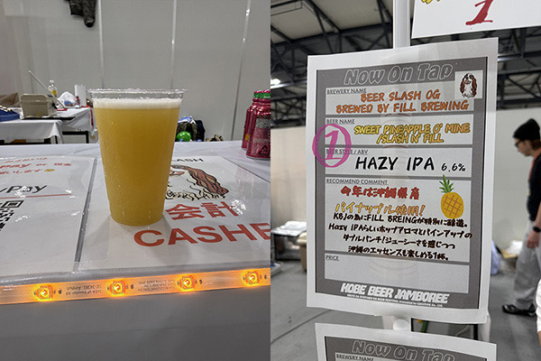 KBJ2026のためにFILL BREWINGが特別に醸造したBEER SLASHオリジナルビール。沖縄県産パイナップルを使用し、Hazy IPAらしいホップのアロマとパイナップルがジューシーでトロピカルなビールに仕上がりました、とのこと。パイナップルが前面に出ながらも、しっかりと苦みもありちょっと贅沢感あるヘイジーでした。