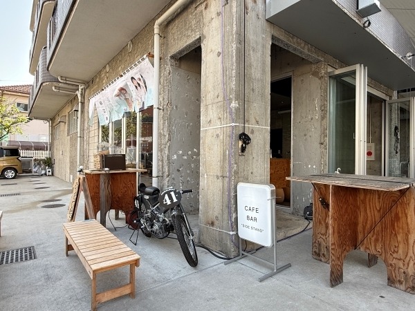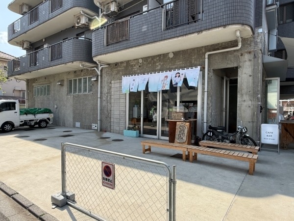 建物の正面はコンクリート打ち放し。どこか無機質でありながら、完全には閉じていない。2階から上は住宅という構成も含めて、街の中にそのまま存在している。