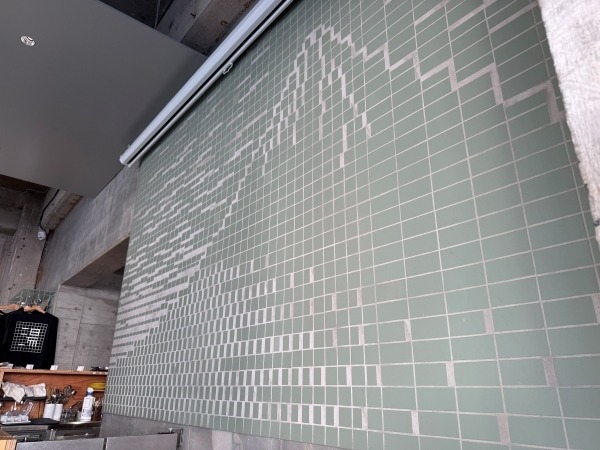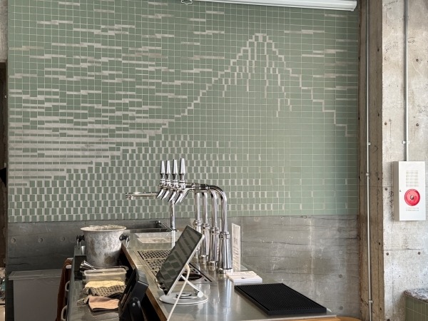 その思想がもっとも明確に現れているのがタイルだ。館内の象徴でもある、グリーンと白で描かれた富士山。その周囲を構成するタイルは、多治見で製作されたオリジナル。サイズの異なる3種類のタイルが、一見すると自然に、しかしよく見ると微妙に切り替わるように配置されている。