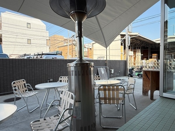 内気浴スペースには6席のチェア。天井からのスポットクーラーが一人ひとりに風を送る。